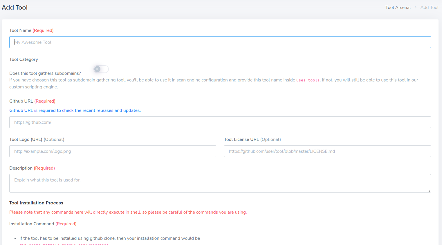 - Tool Category: If your tool is a subdomain gathering tool, you need to choose this yes.