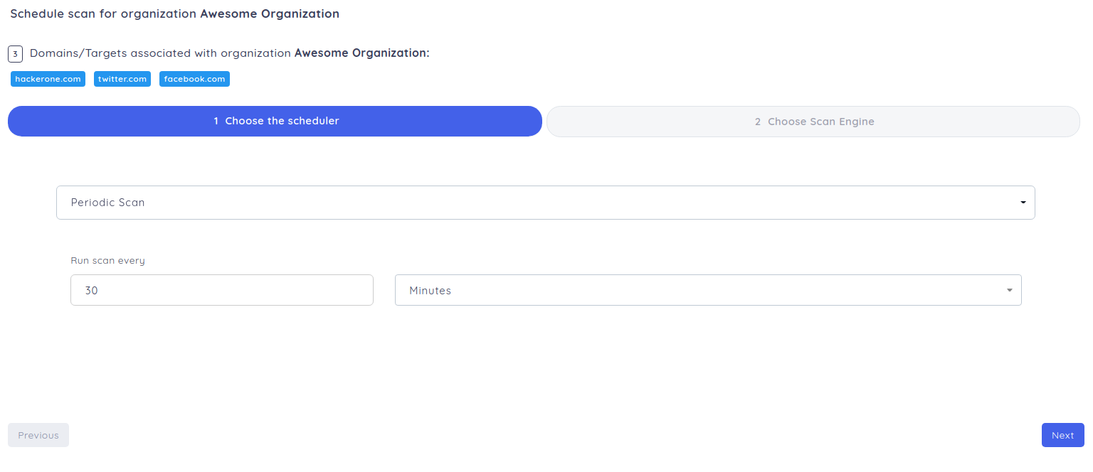 You can also initiate the scan on organization. This means, the scan will be performed on all targets tagged to the organization.